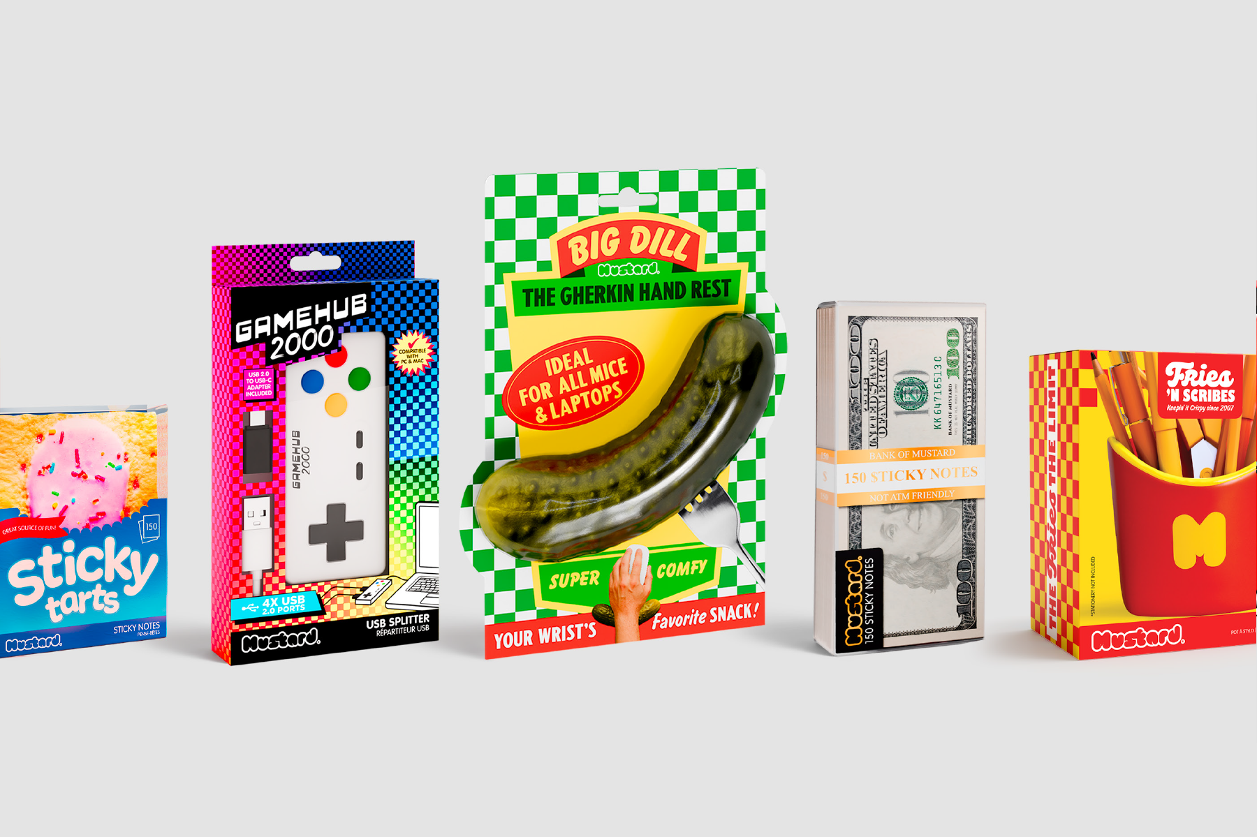 Mustard designs and sells stationery, desk accessories and tech-related products, drawing inspiration from 80s–90s culture and the philosophy of “everyday rebellion.” Built on humour, colour and pop references, the brand had developed a recognisable voice but relied heavily on trend-driven aesthetics. As the audience evolved, there was a need to mature the visual language and reposition Mustard with a more enduring and culturally grounded presence.